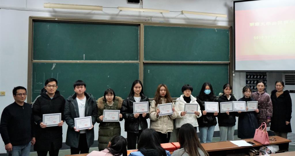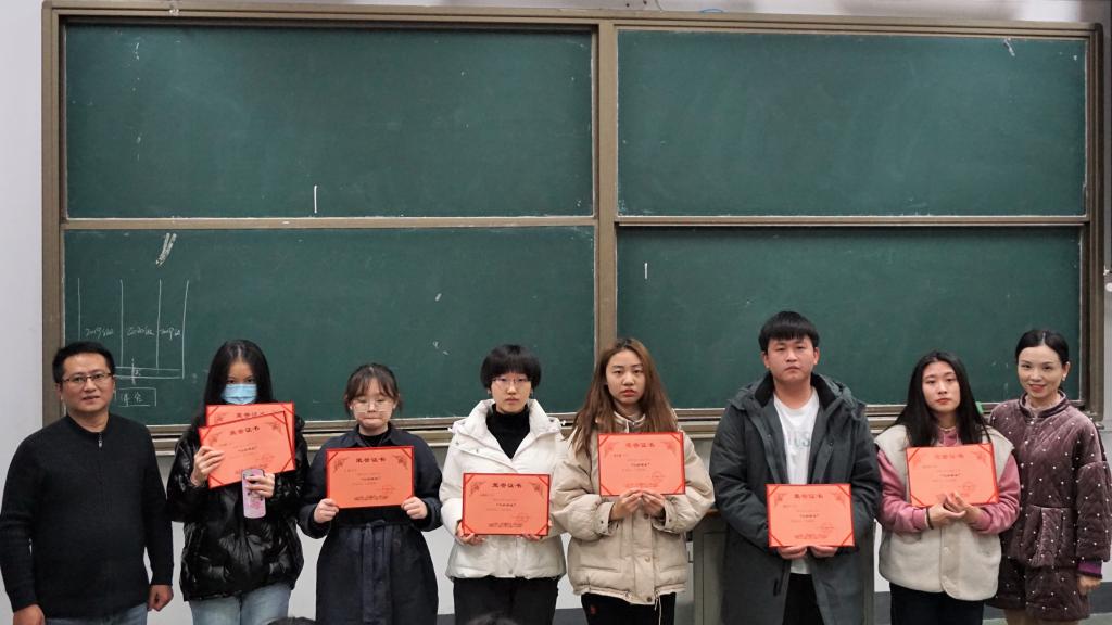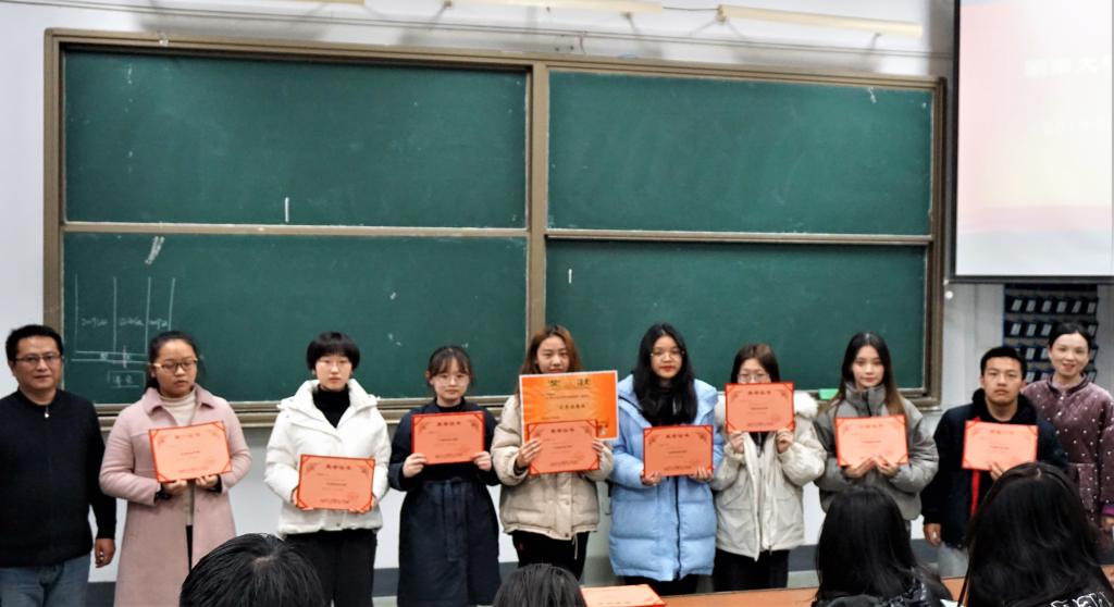 首先,唐伟主任宣读了获得综合奖和学习进步奖的学生名单,和向磊主任、戴杨副主任一起为获奖学生颁奖,并合影留念。