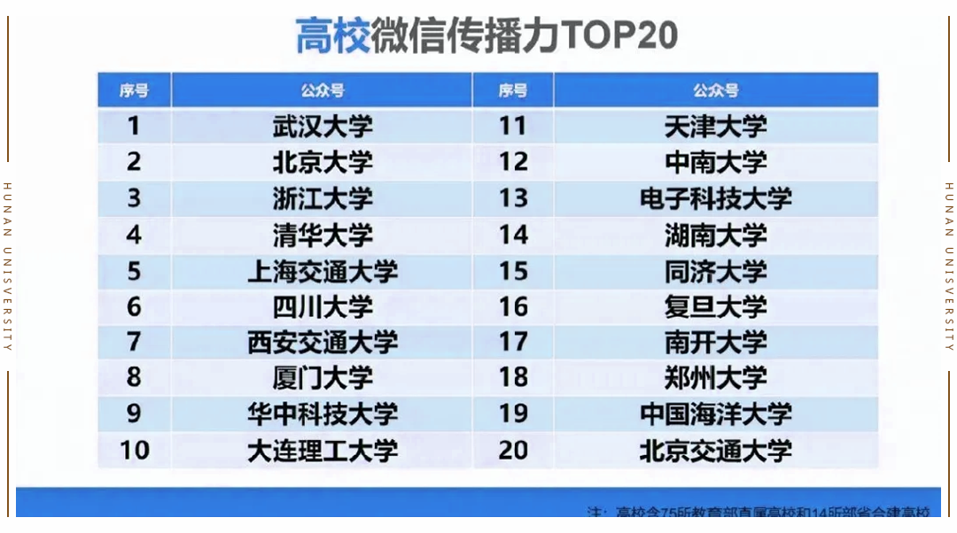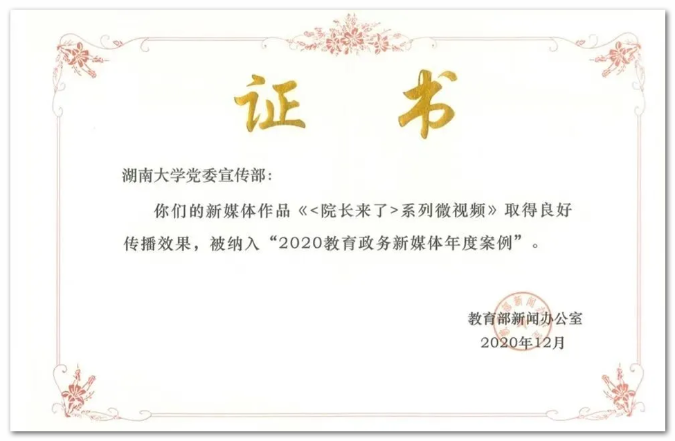 2020年6月15日起至7月25日,湖南大学官方微信重磅推出《院长来了》系列微视频,22位学院院长出镜“代言”,介绍湖南大学最新的办学成果、学科优势和人才培养特色,为各地考生、家长、老师提供最新最全、最权威的本科招生信息和公告。内容丰富,形式活泼,联合湖南日报中央厨房制作推出H5融合专题,呈现出多媒体技术融合报道的形式,实现了丰富的全媒体效果。