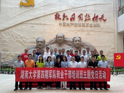 为进一步推进党史学习教育,引导党员学党史、悟思想、办实事、开新局,6月3日,湖南省军队转业干部教育培训基地——湖南大学组织第四期军转干部培训班学员走进湖南党史陈列馆、湖南雷锋纪念馆,开展党史学习教育主题党日活动。