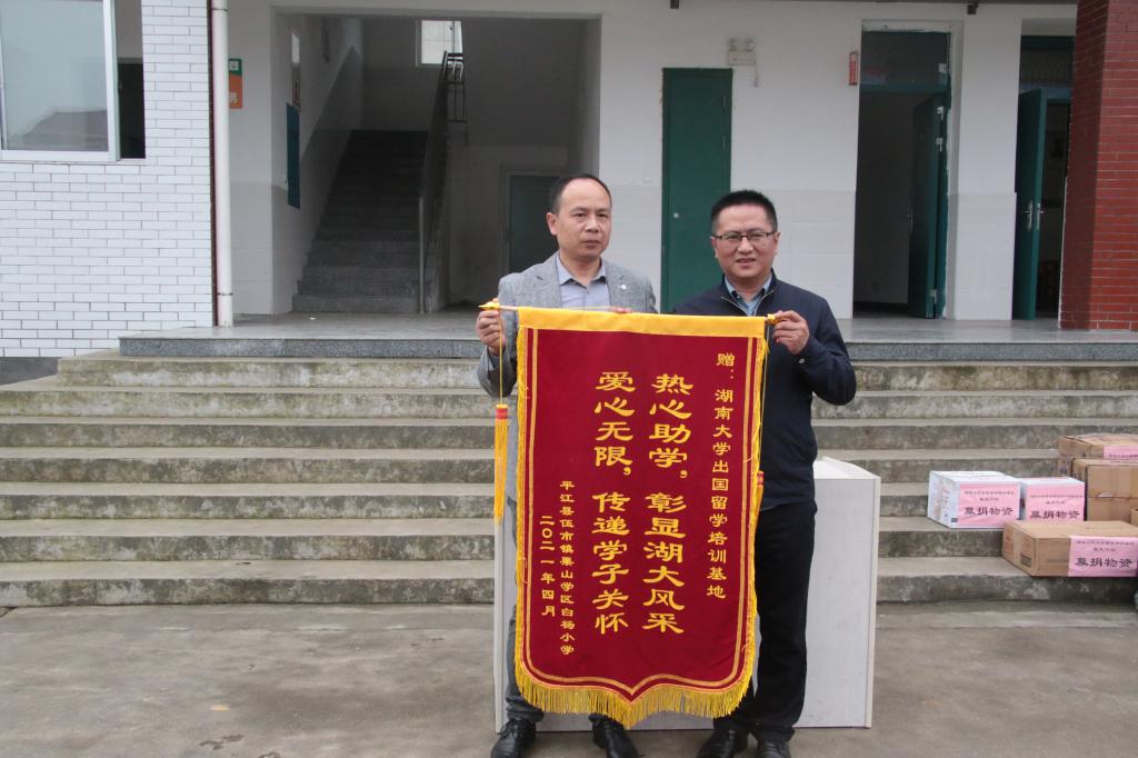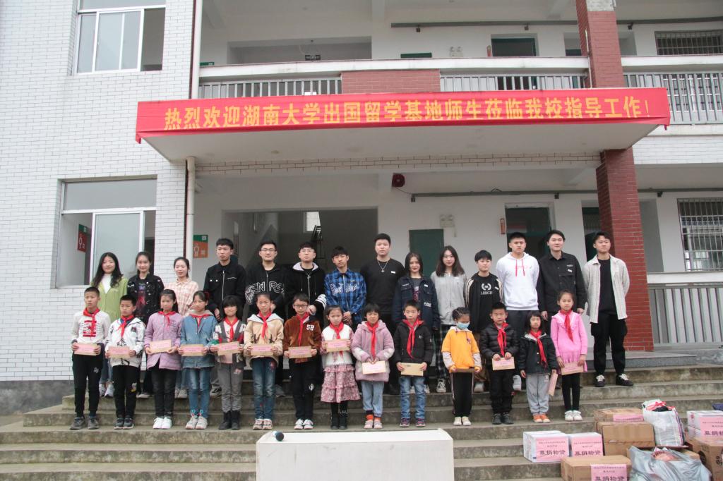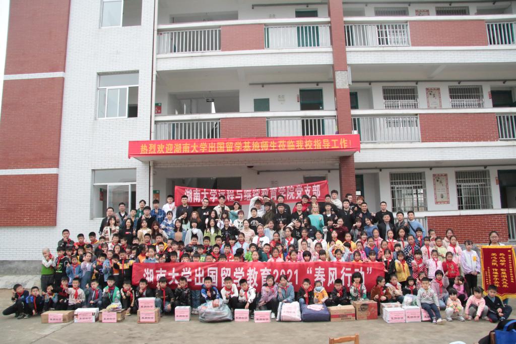 又是一年春暖花开时,新的希望也悄悄在人们心中播种。湖南大学出国留学培训基地(以下简称留学基地)传统爱心助学活动——“春风行动”于4月17日在岳阳市平江县伍市镇白杨小学顺利举行。留学基地2020级本科项目学生代表、2021级春季硕士项目学生代表以及湖南大学第四期军转干部学员代表参与本次活动。