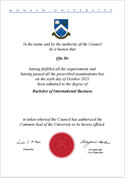 时间真是一个神奇的魔法师。两年前,她还在澳大利亚蒙纳士大学刻苦学习,在图书馆自习早出晚归;半个月前,已经获得学士学位证书的她,又以优异的成绩申请到了全球高校QS排名第38位的悉尼大学和第43位的新南威尔士大学的硕士研究生;现在的她,正在办理签证续签事项,预备明年2月份飞往澳洲,进入心仪的院校继续深造。
