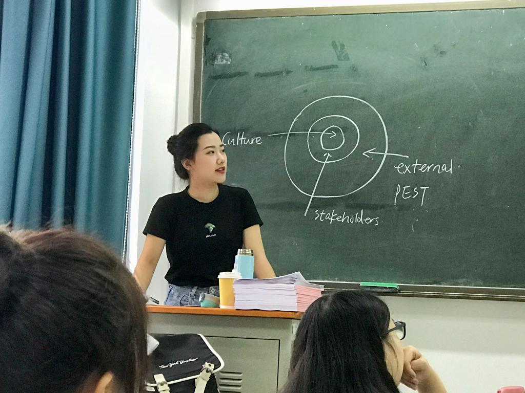 为了让同学们适应国际化教育方式,教授《管理学》的老师坚持用全英文授课,还布置了小组带PPT演讲等作业。为了顺利完成任务,张玥涵经常和室友一起讨论、分工而又协作,一次次地练习上台用英文讲述自己的观点。“这些训练对我的帮助很大,提高了我用全英文交流表达的能力,以后去国外课堂就不会紧张了。”张玥涵说。
