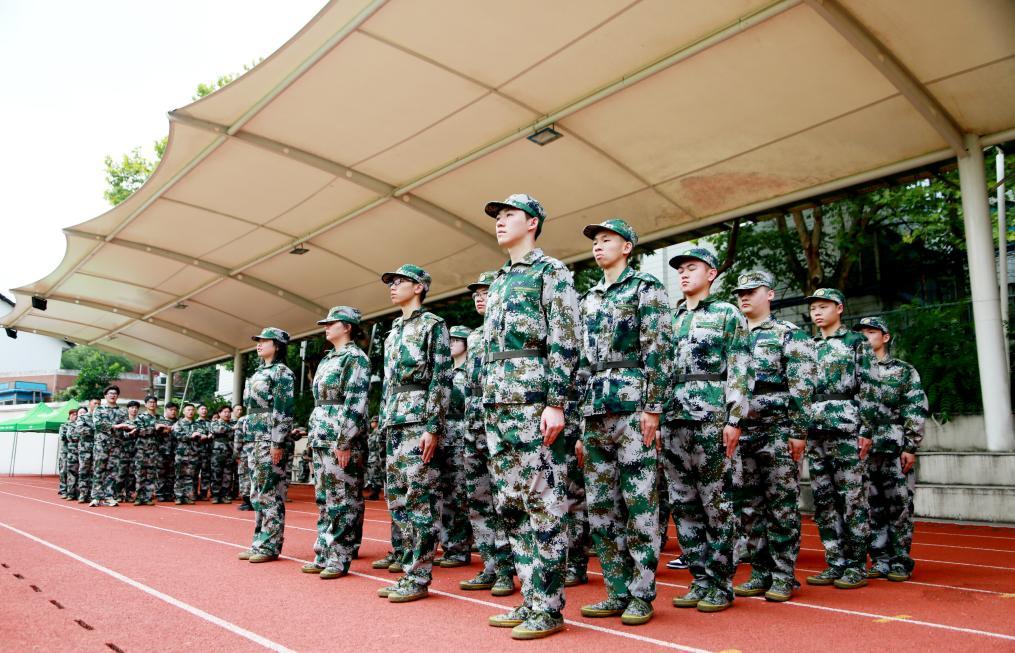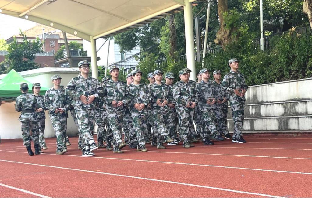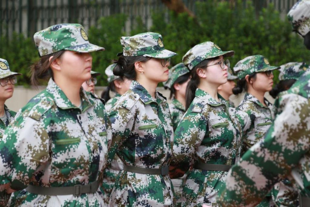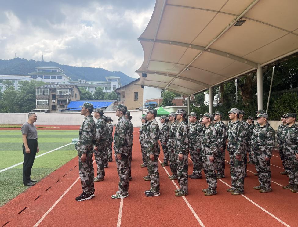 △湖南大学武装部副部长戴谋元看望军训中的新生